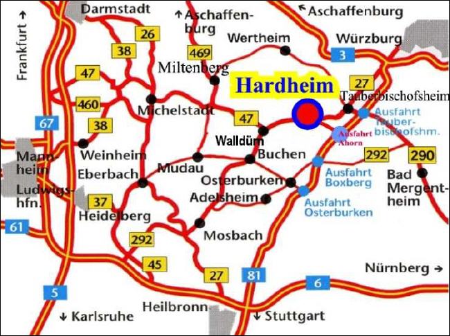 Bei Anfahrt über die A 81 benutzen Sie die Ausfahrt Ahorn und fahren dann in Richtung Hardheim. Von hier aus sind es noch knapp 8 km und Sie sind am Ziel.